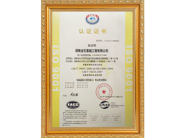 ISO質(zhì)量認證證書